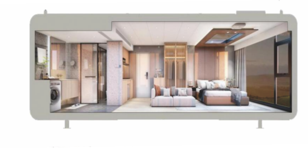 2 | Interior Structure | Eco-friendly integrated ceiling and walls with high-end finishes, plastic wood flooring, privacy glass bathroom door, and comprehensive water and electrical systems for full functionality. |