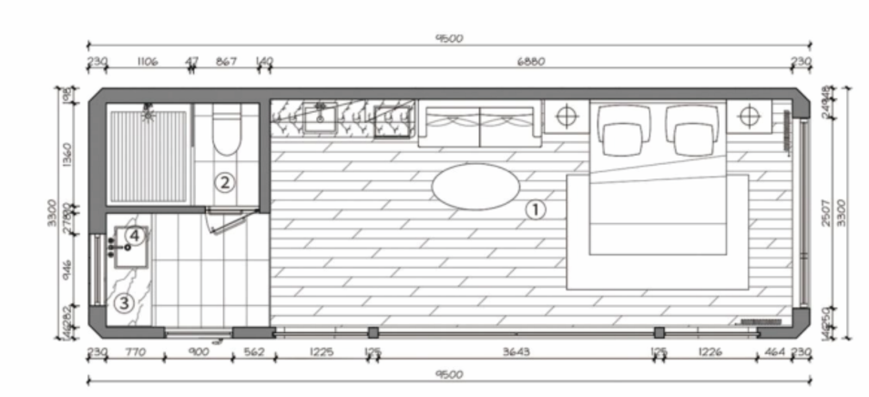 5 | Optional Features | Optional electric pipe heating, mini induction cooker with range hood, mini fridge, custom storage cabinets, and an entrance staircase for enhanced functionality and style. |
