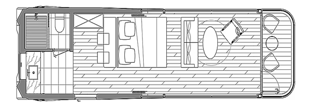 5 | Optional Features | Optional electric pipe heating, mini induction cooker with range hood, mini fridge, custom storage cabinets, and an entrance staircase for enhanced functionality and style. |