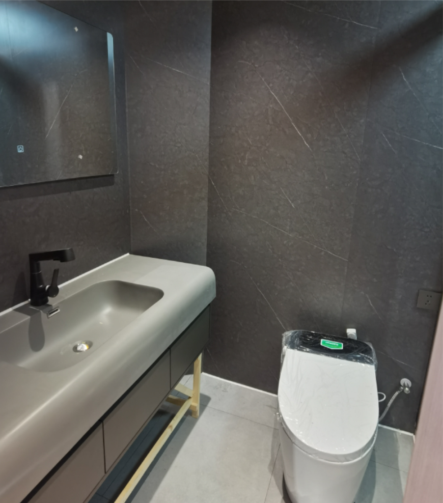 3 | Bathroom | Marble flooring, high-end smart toilet, branded shower, and a vanity setup with integrated lighting, ventilation, and heating for comfort and convenience. |