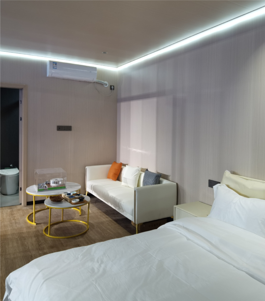 1 | Main Structure | Robust galvanized steel frame (2-3mm thick) with a fluorocarbon-coated aluminum shell (2mm thick), 80-100mm polyurethane insulation, and triple-pane hollow tempered glass for efficiency. Features include a custom entrance door with a smart lock and ambient lighting strips. |